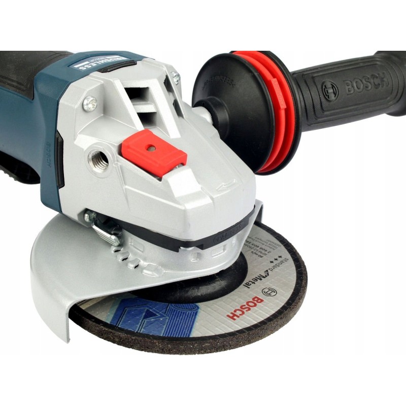 Der sehr ergonomische Griffbereich, der mit rutschfestem Softgrip-Material überzogen ist, garantiert hohe Arbeitssicherheit und hohen Bedienkomfort, sorgt für einen optimalen Winkel zwischen Werkzeug und Werkstück und gewährleistet dabei Präzision beim Schneiden und Schleifen