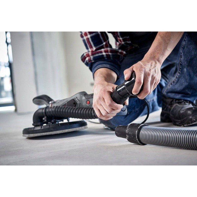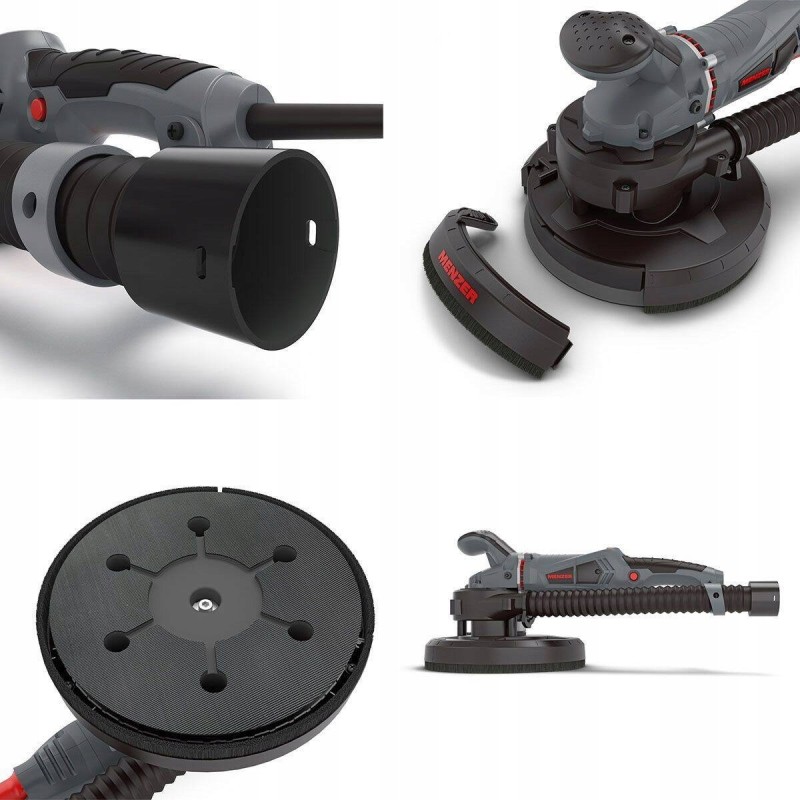 Der Schleifer ist mit einer Scheibe mit einem Durchmesser von 225 mm ausgestattet, was eine große Arbeitsfläche gewährleistet und eine schnelle Bearbeitung von Wänden und Decken ermöglicht, was die Arbeitseffizienz auf größeren Flächen erhöht.