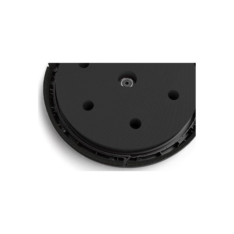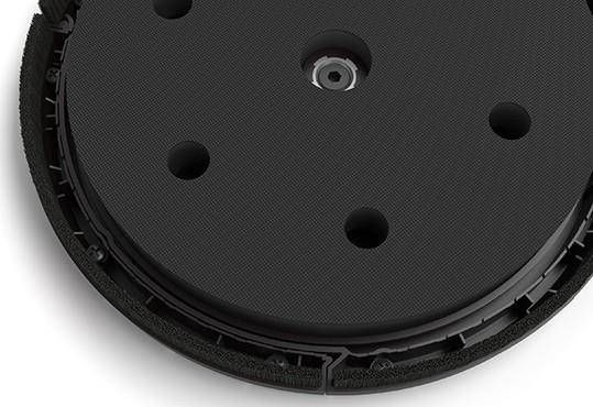 Fest montierter, drehbarer Adapter für den Staubsaugerschlauch. - Schwammscheibe, die per Klettverschluss am Scheibenträger befestigt wird, was das Risiko von Beschädigungen beim Wechseln des