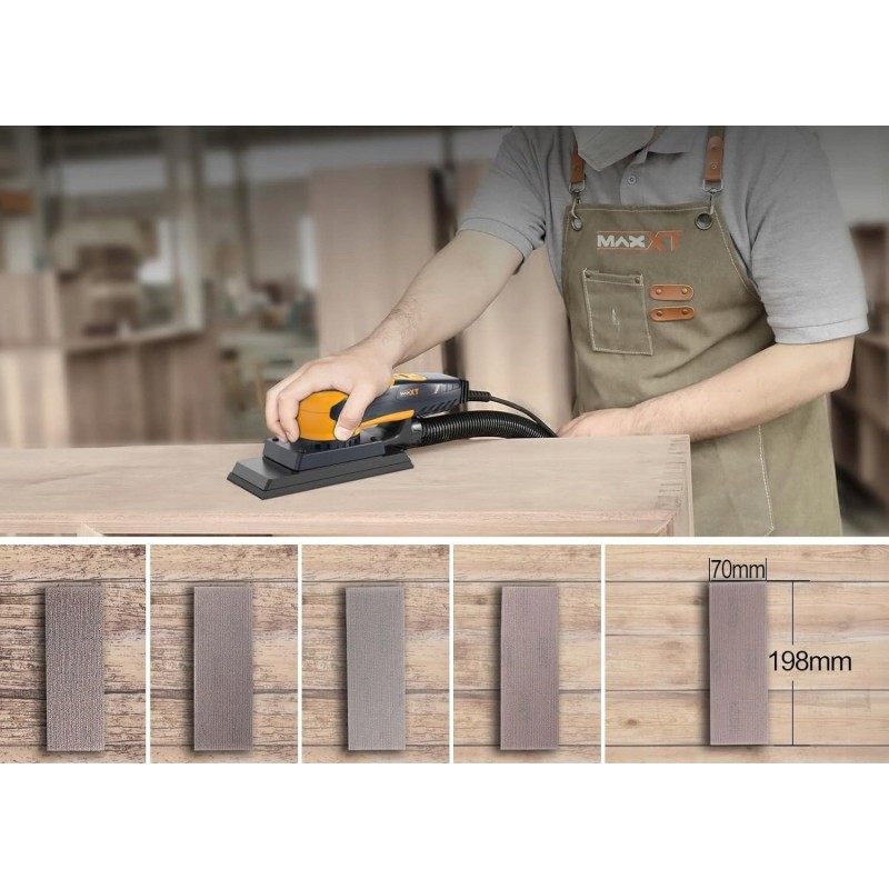 Die quadratische Schleifscheibe mit den Maßen 198 x 70 mm ermöglicht das effektive Schleifen verschiedener Oberflächen und ist damit ein hervorragendes Werkzeug für die Holzbearbeitung. So erreichen Sie mühelos schwer zugängliche Stellen und erzielen ein glattes Finish.