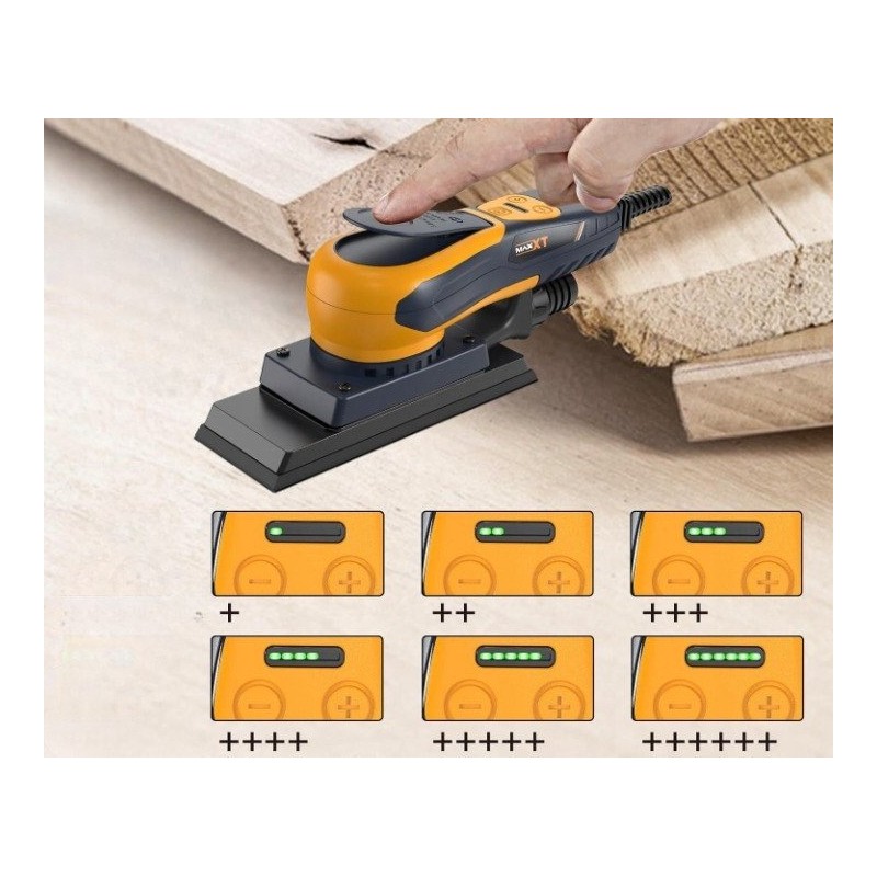Der Schleifer bietet eine sechsstufige Drehzahlregelung, wodurch er an die spezifischen Bedürfnisse des Anwenders angepasst werden kann. Ganz gleich, ob du sanftes Schleifen oder intensive Bearbeitung benötigst, der MAXXT wird deinen Anforderungen gerecht.