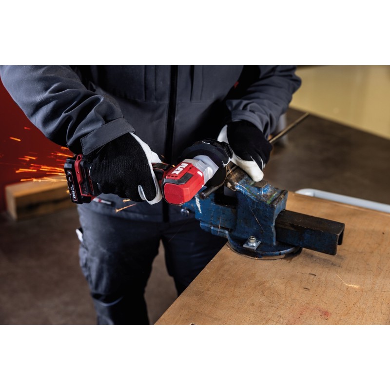 Der Akku-Winkelschleifer FLEX LBE 76 12-EC C zeichnet sich durch eine ergonomische Bauweise aus, wodurch er auch bei längerem Einsatz einfach zu bedienen und komfortabel ist. Das gummierte Getriebegehäuse sorgt für einen sicheren Halt, und der Arretierungsknopf erleichtert den Scheibenwechsel, was die Arbeitseffizienz deutlich erhöht.