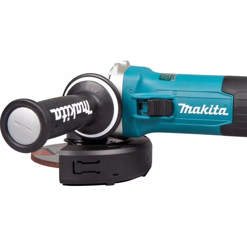 Winkelschleifer mit hoher Lebensdauer und AFT-Technologie (Active Feedback Sensing) – automatische Abschaltung des Werkzeugs zum Schutz des Benutzers bei plötzlicher Verlangsamung oder Stillstand der Scheibe (sog. Kick-back). Verfügt über das SJS II-System zur effektiven Schwingungsdämpfung sowie einen Schiebeschalter.