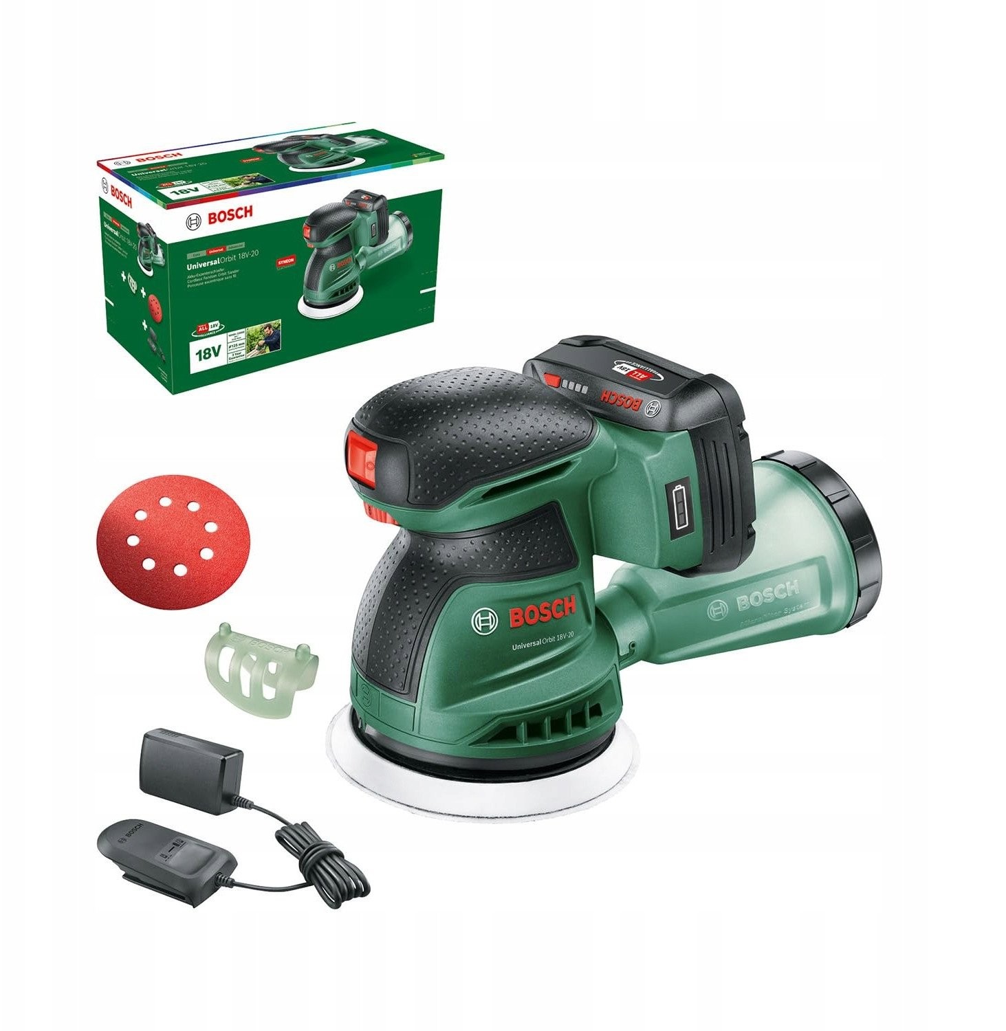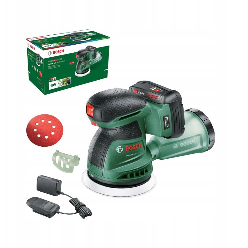 - Enthaltene Komponenten: UniversalOrbit 18V-20, 1 Akku 2,0 Ah, 1 Ladegerät AL 18V-20, 1 Schleifpapier K80, 1 Schleifpapierhalter, Kartonverpackung