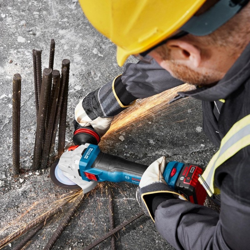 Der Bosch-Winkelschleifer GWS 18V-11 ist ein Werkzeug, das die Leistung eines bürstenlosen Motors mit einer Leistung verbindet, die mit netzbetriebenen Geräten mit 1100 W vergleichbar ist. Dadurch eignet er sich hervorragend für vielfältige Aufgaben wie Schneiden, Schleifen, Entgraten und Entrosten. Dieses Werkzeug ist sowohl für professionelle Werkstätten als auch für Heimwerkerprojekte ideal.