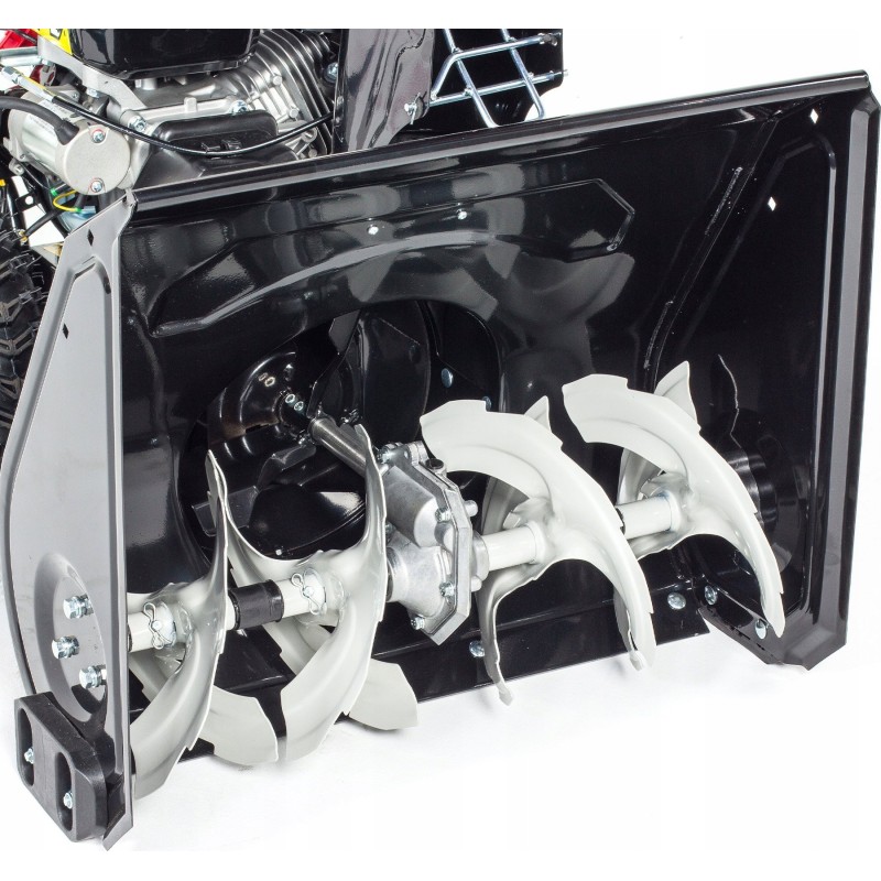 Die Maschine ist mit einem Schneckenfräser aus robustem Stahl ausgestattet, der eine Arbeitsbreite von 61 cm hat.