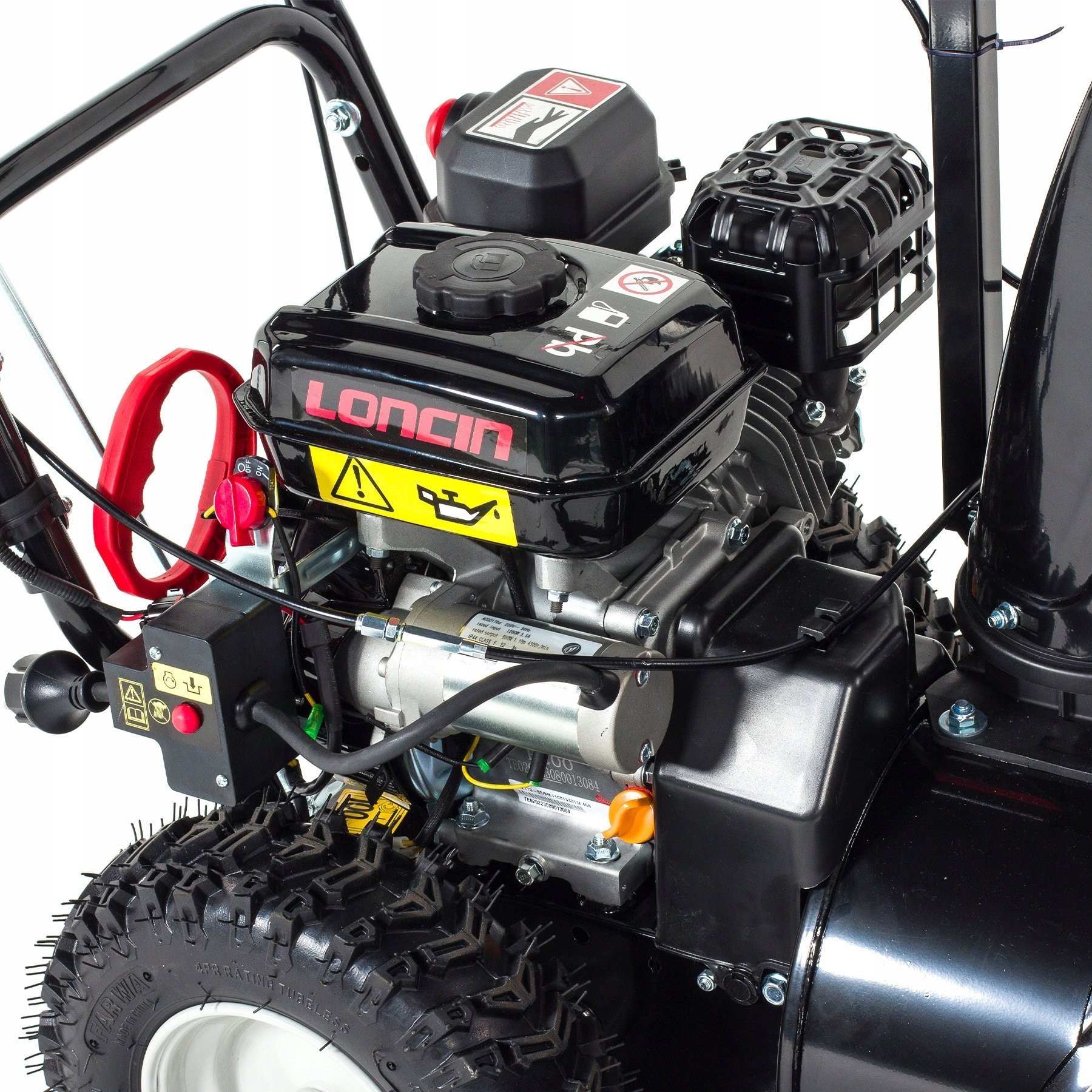 Die Benzin-Schneeräummaschine STP196L-61-K verfügt über einen hochwertigen, viertaktigen LONCIN H200-Motor mit obenliegenden Ventilen, einem Hubraum von 196 cm³ und einer Nennleistung von 4,1 kW.