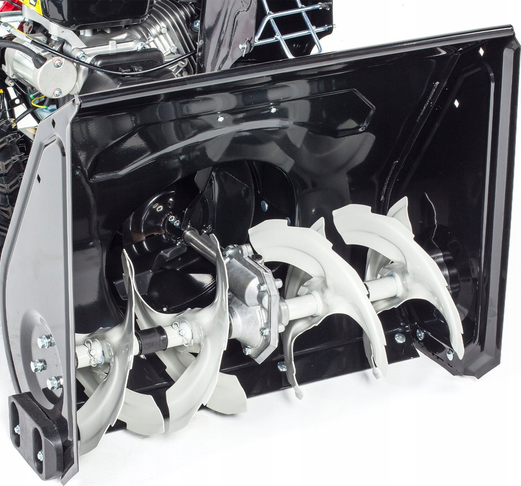 Die Maschine verfügt über einen Radantrieb, was die Arbeit erleichtert. Der Vorteil dieser Funktion besteht darin, dass beim Führen der Schneefräse keine Kraft aufgewendet werden muss.