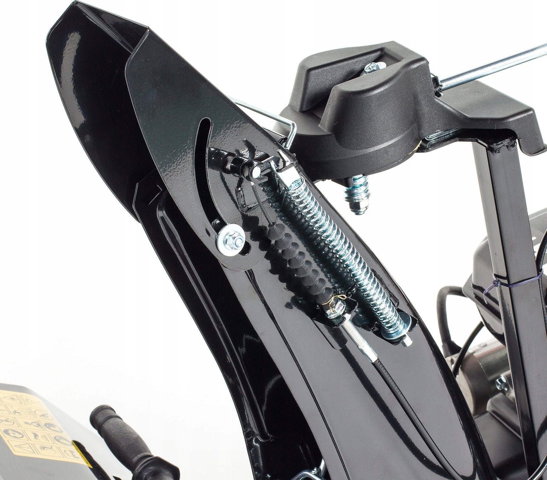 Die Schneeräummaschine verfügt über einen drehbaren Auswurfschacht, der im Bereich von 190 Grad verstellbar ist. Sowohl der Schacht als auch das Stahlgehäuse der Maschine sind sehr stoßfest.