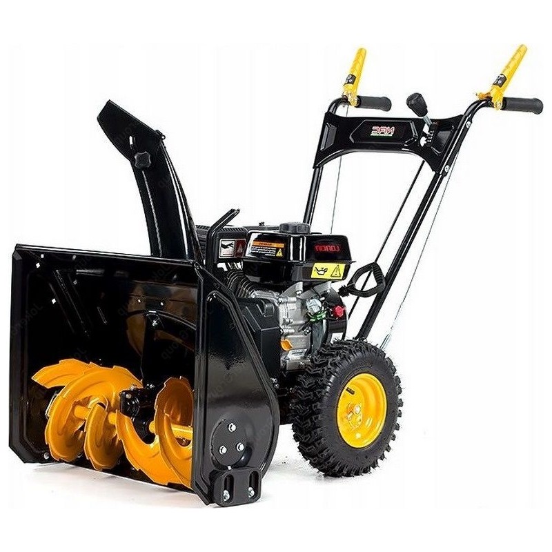 Die vorgestellte Schneefräse verfügt über 2 große Antriebsräder aus Gummi, die das Manövrieren der Maschine unter allen Bedingungen erleichtern – überzeugen Sie sich selbst vom außergewöhnlichen Arbeitskomfort dank des Antriebs mit 4 Vorwärtsgängen. Die Möglichkeit, im Rückwärtsgang zu arbeiten, erleichtert das Befreien des Geräts, falls es sich eingegraben oder festgefahren hat.