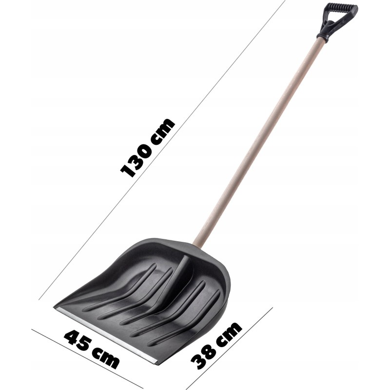 - Material: Holzstiel + HDPE-Polyethylen (Arbeitsteil) + Beschläge aus verzinktem Blech