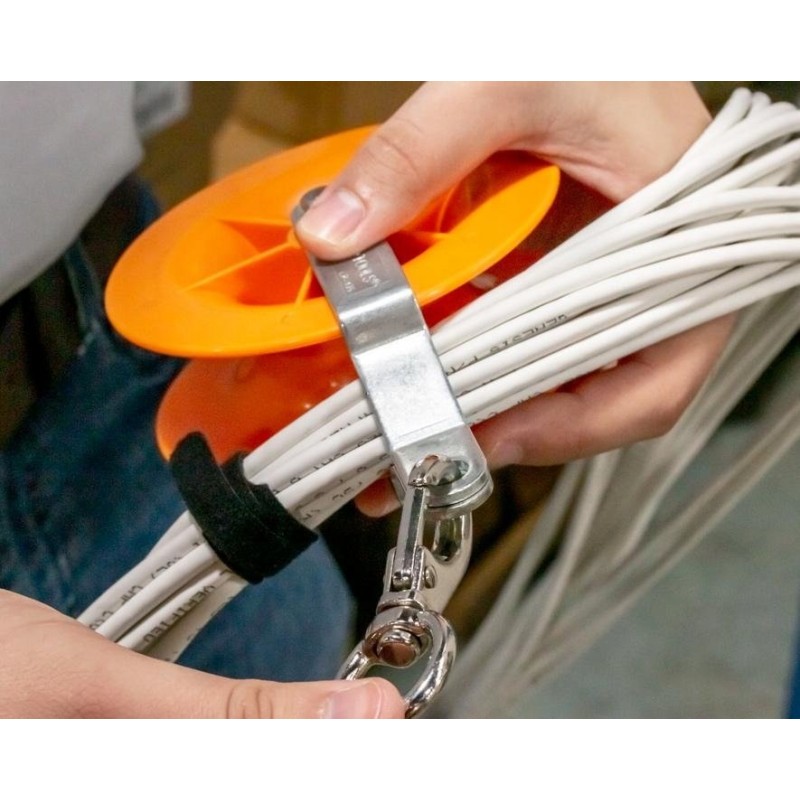 - Der drehbare Karabinerhaken lässt sich leicht anbringen und hält die Rolle in Zugrichtung, um Knicke zu verhindern