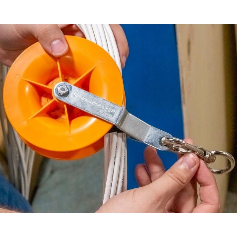 Jonard CP-475 ist ein Set aus zwei Seilrollen, die für die Verlegung von elektrischen Kabeln, Koaxialkabeln, Netzwerkkabeln und anderen Niederspannungskabeln entwickelt wurden. Dank drehbarer Karabinerhaken, tiefer Rillen und Wälzlager halten diese Rollen die Kabel in einer Linie mit der Zugrichtung und verhindern so ein Verhaken und Knicken.