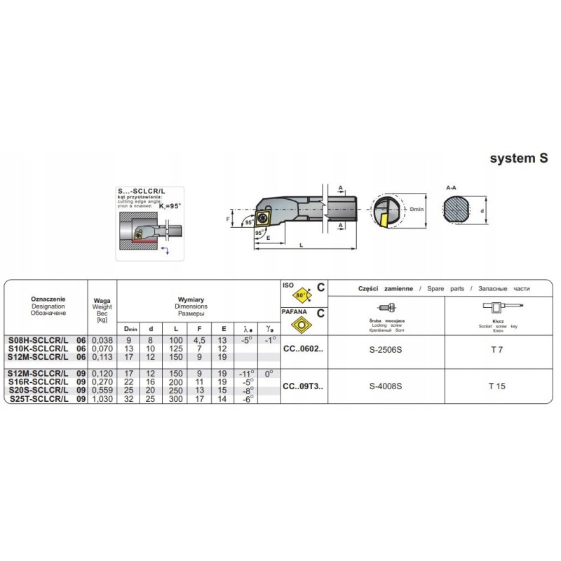 Technische Daten des Drehmeißels S08H SCLCR 06