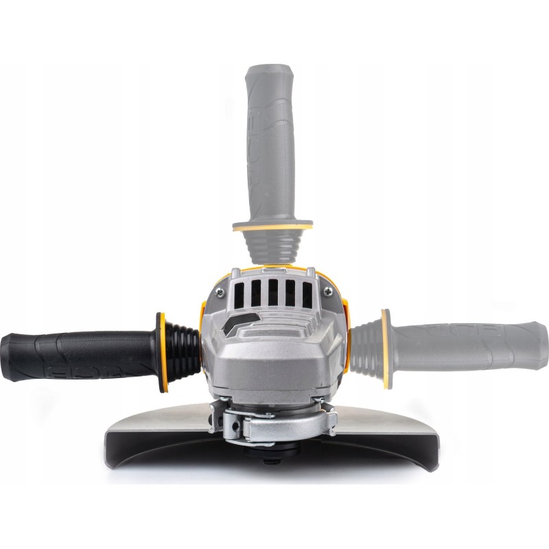 Die Schleifmaschine verfügt über einen beweglichen, vibrationsdämpfenden Seitengriff, der an drei Punkten befestigt werden kann – dies ermöglicht ein bequemes und stabiles Halten der Schleifmaschine in drei verschiedenen Positionen: links, rechts und oben. Dadurch ist das Werkzeug sowohl für Rechts- als auch für Linkshänder ideal geeignet
