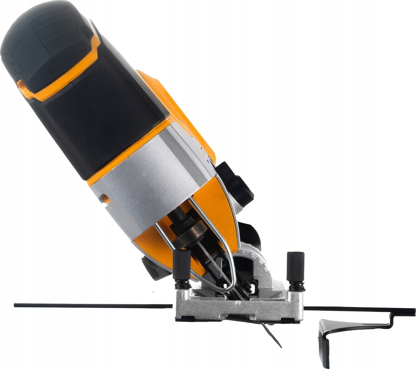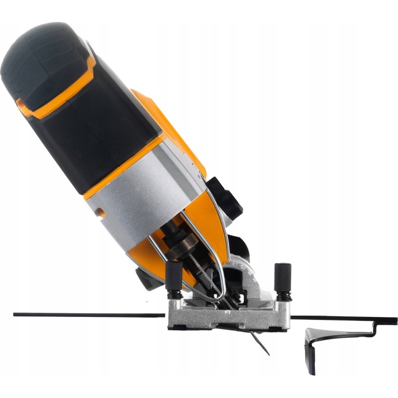 ☑️ Der verstellbare Fuß ermöglicht eine bequeme Neigung des Geräts für Gehrungsschnitte oder Arbeiten nahe an Kanten