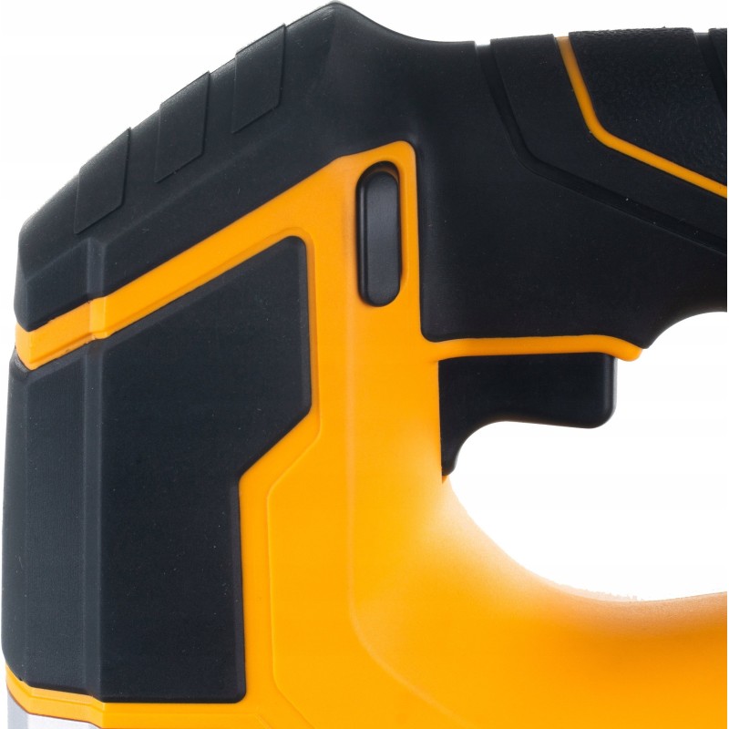 ✔️ Zur Verriegelung dient ein Knopf, der sich über dem Auslöser der Stichsäge befindet