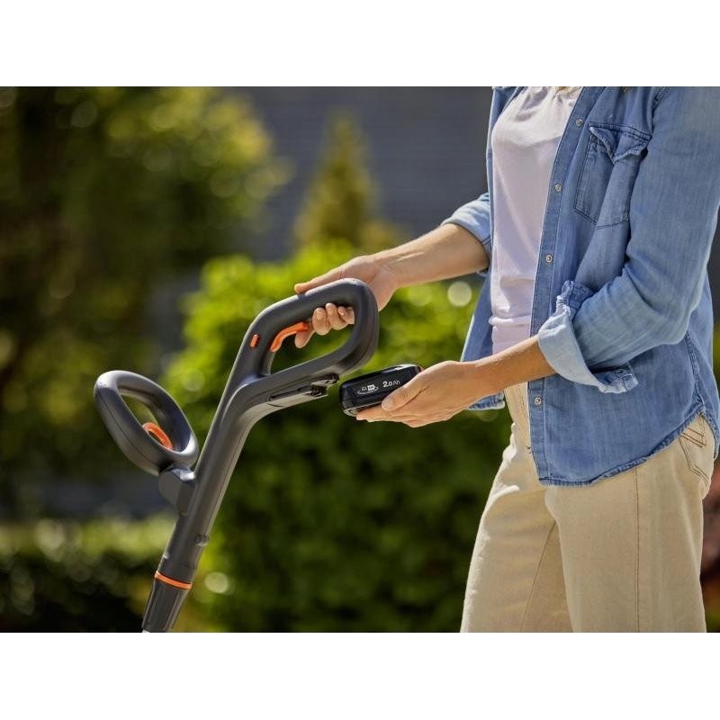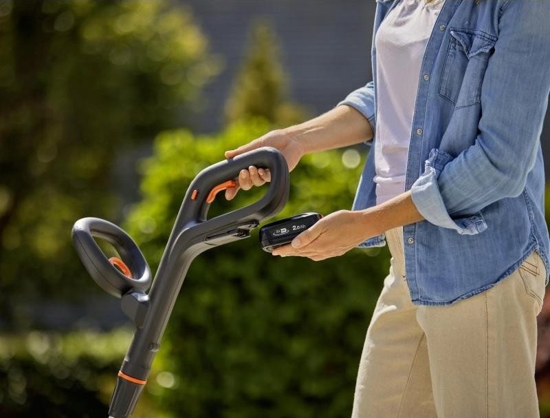 Das Gerät zur Unkrautbekämpfung wiegt nur 2 kg (ohne Akku) und lässt sich daher mühelos bedienen. Der ergonomisch geformte Griff, ergänzt durch einen zusätzlichen vorderen Haltegriff, garantiert außergewöhnlichen Komfort bei der Arbeit. Dies ermöglicht ein ergonomisches, spannungsfreies Arbeiten in aufrechter Haltung und erhöht den Gesamtkomfort erheblich.