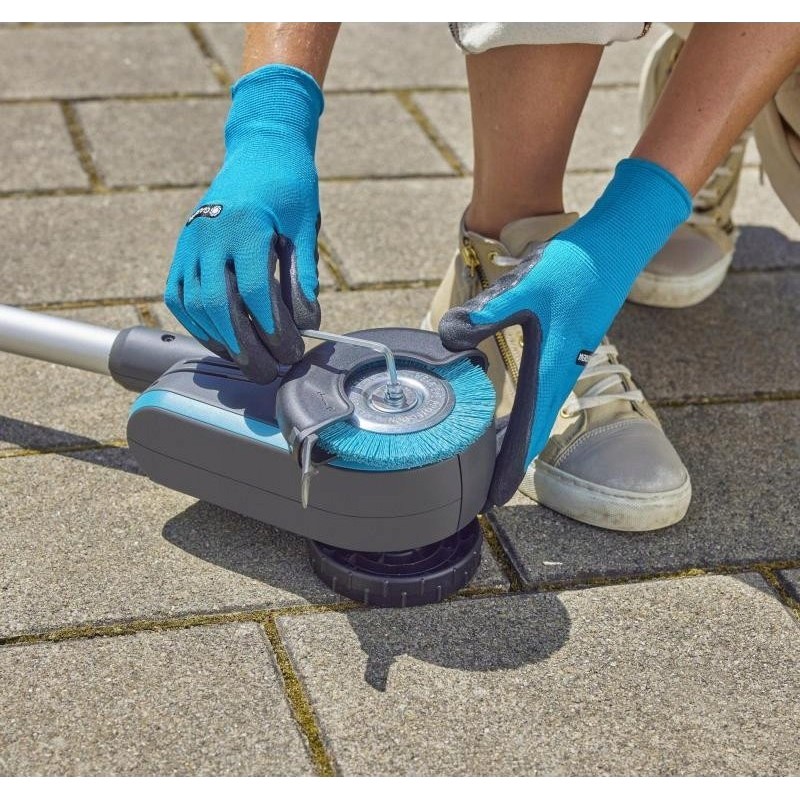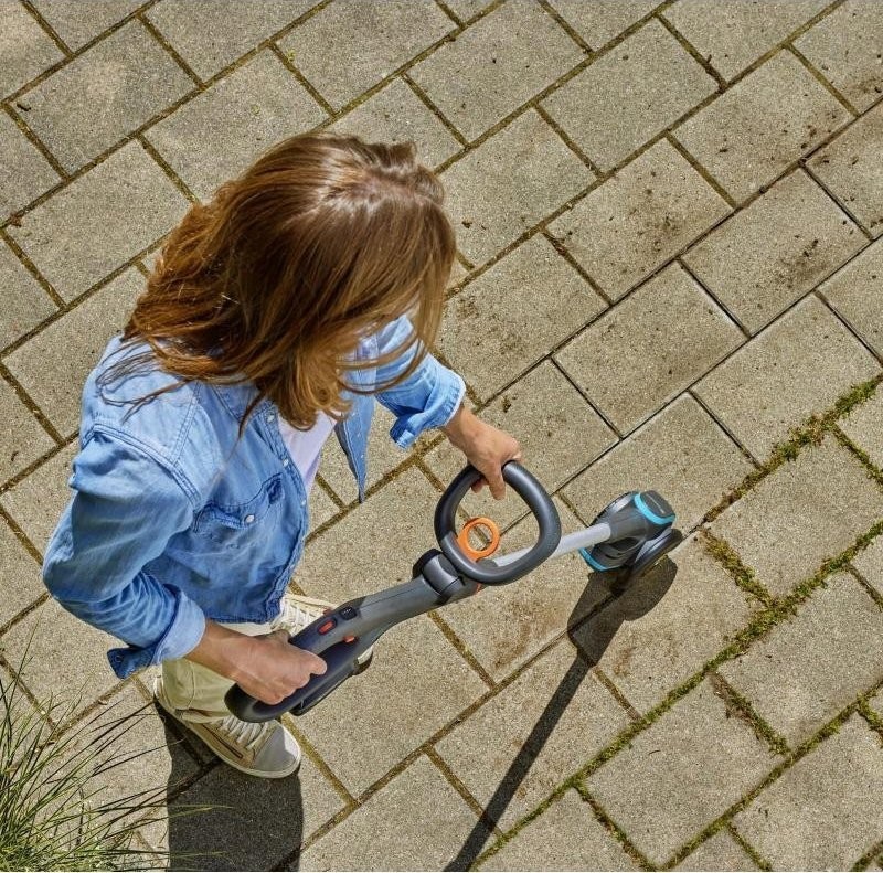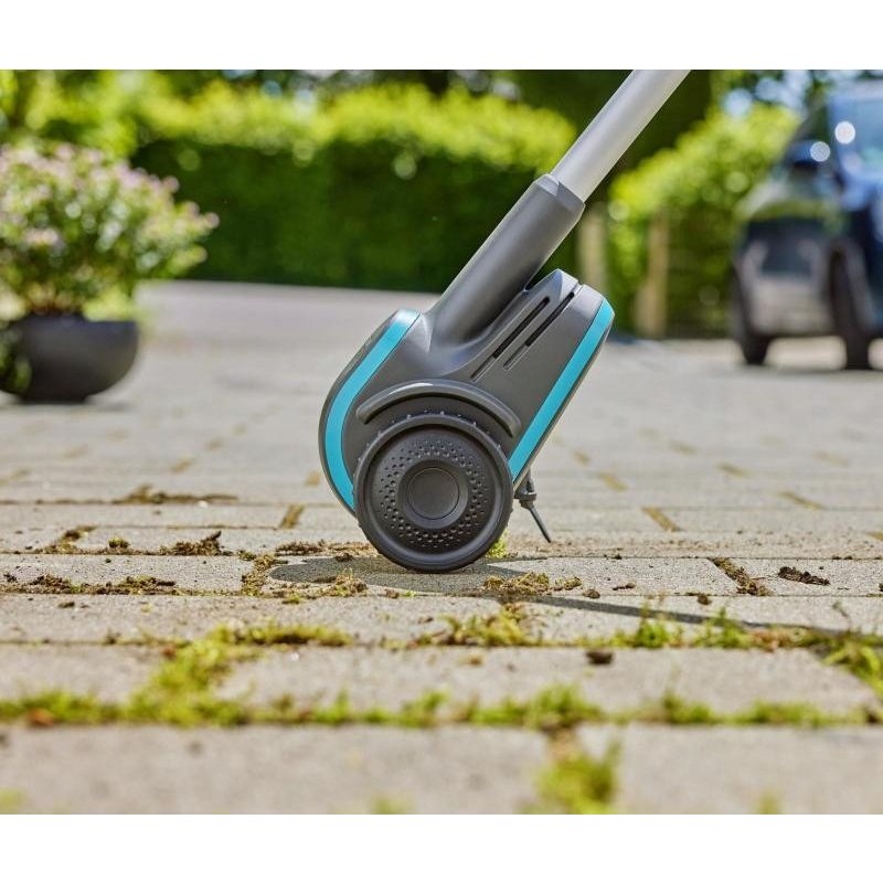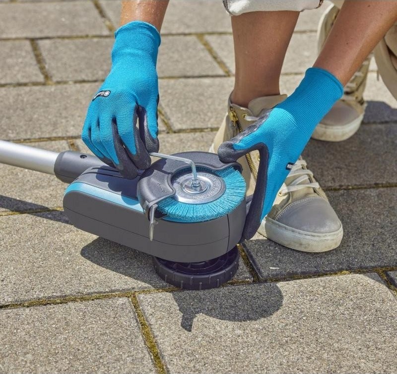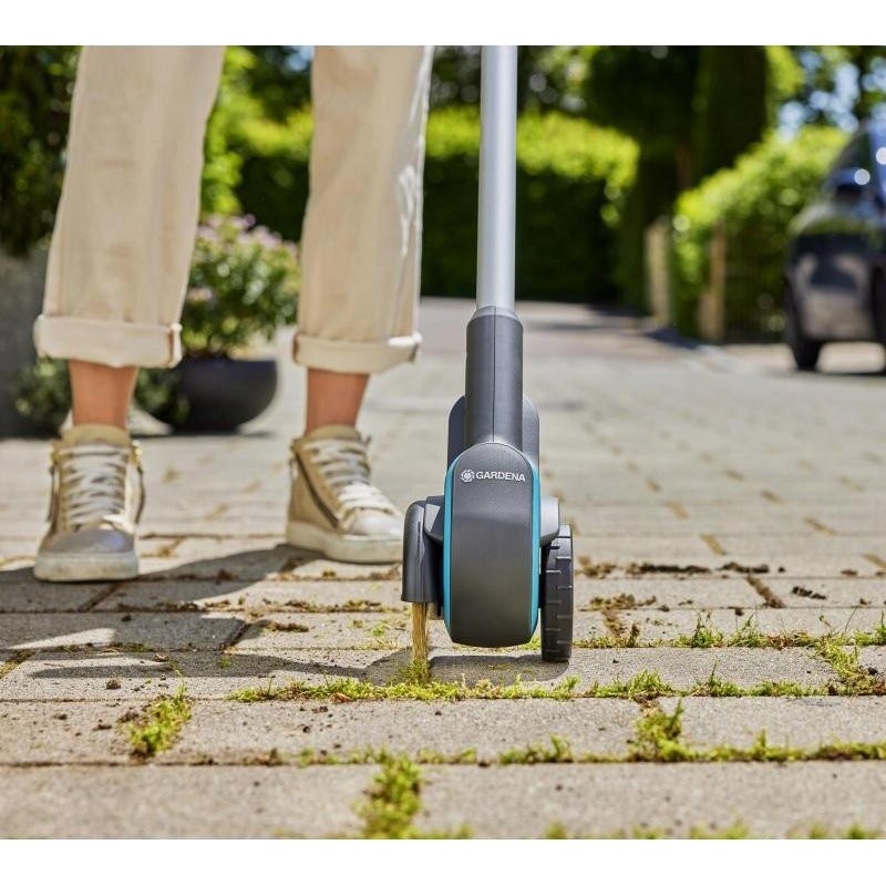 Die Entfernung von Schädlingen aus Fugen war früher eine mühsame und unbequeme Arbeit. Das ständige Bücken war anstrengend, und die verwendeten Chemikalien schadeten der Umwelt. Die neue GARDENA Fugenbürste 1800/18V P4A ist äußerst leistungsstark. Sie reinigt gründlich ohne den Einsatz von Chemikalien, schnell und mühelos auf Knopfdruck. Das Set enthält einen Akku und ein Ladegerät, sodass Sie sofort loslegen können.