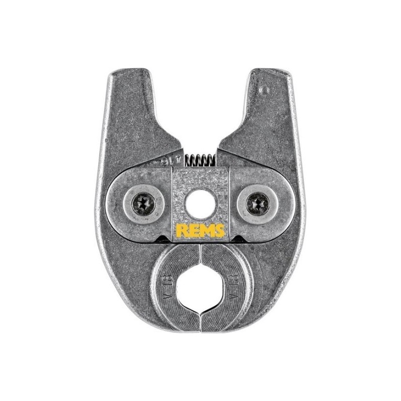 Hochbelastbare Presszangen/-ringe aus geschmiedetem, zäh-hartem und entsprechend gehärtetem Spezialstahl. Die Presskonturen der REMS-Zangen/-Ringe sind systemspezifisch und entsprechen den Konturen der jeweiligen Presssysteme. Dies gewährleistet eine problemlose Kompatibilität und eine sichere Pressverbindung. Die Backen der Klemmzangen/Klemmringe sind auf einem CNC-Bearbeitungszentrum präzise gefräst und maschinell exakt abgerundet. Dies garantiert geringe Fertigungstoleranzen. Antrieb mit REMS Mini-Press ACC, REMS Mini-Press 22 V ACC und REMS Mini-Press S 22 V ACC