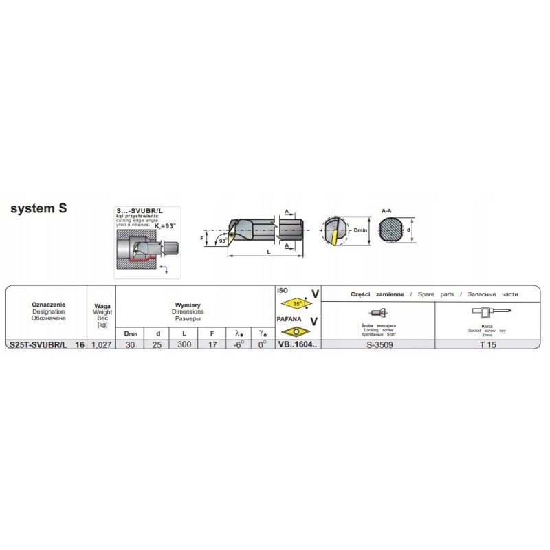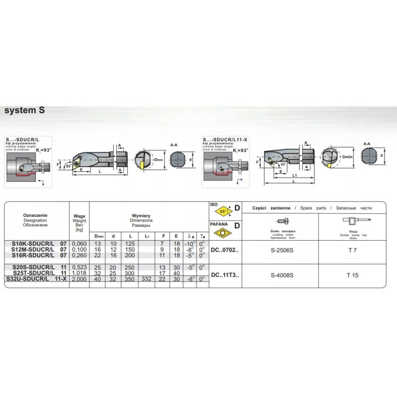 Technische Daten des Drehmeißels S25T SDUCR 11 von Pafan