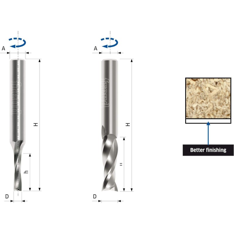 Dieser Fräser eignet sich hervorragend für den Einsatz auf CNC-Maschinen, was ihn zur idealen Wahl für Tischler und Handwerker macht. Dank des positiven Spiralwinkels entfernt das Werkzeug Späne effektiv, was zu einer besseren Bearbeitungsqualität führt, insbesondere bei Spanplatten und MDF.