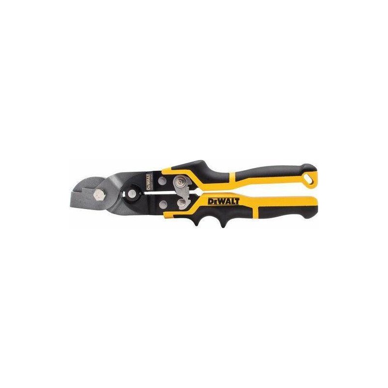 Die DEWALT®-Schere vom Typ V wurde mit einem reduzierten Griffabstand entwickelt, wodurch der Kraftaufwand beim Bearbeiten harter Materialien verringert wird. Dieses Werkzeug wird traditionell zum Schneiden von V-Formen im 30-Grad-Winkel in Blechen verwendet und verfügt über einen einfach zu bedienenden Schneidemechanismus, der für saubere Schnitte sorgt. Es schneidet außerdem V-Formen im 30-Grad-Winkel in verzinktem Stahl mit einer Stärke von bis zu 24 Gauge. Das Werkzeug verfügt über rutschfeste, ergonomische Griffe und eine externe Verriegelung für eine einfache Handhabung.