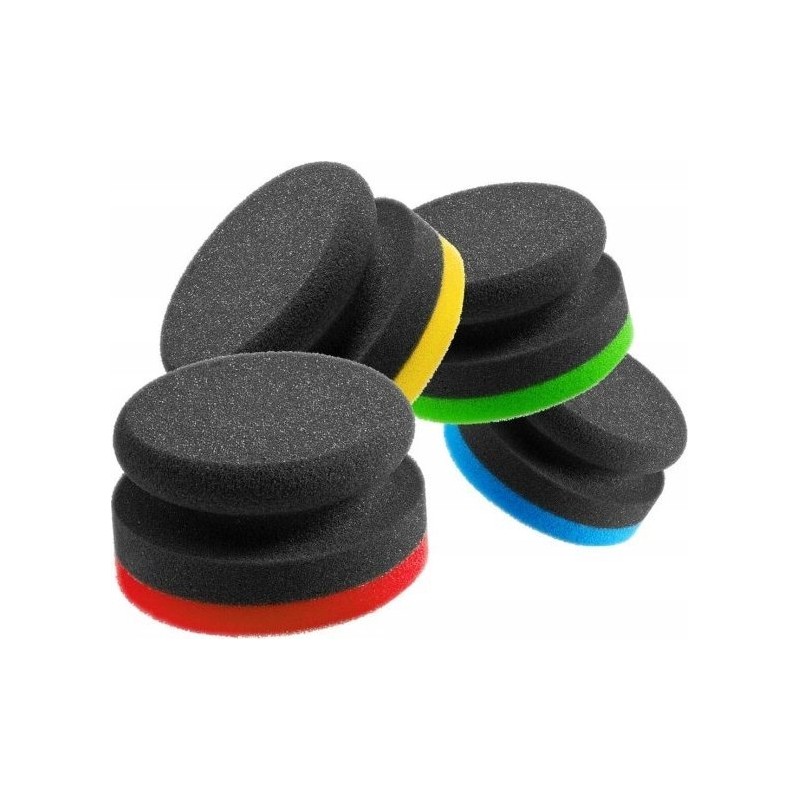 - Weiche Polierschwämme werden verwendet, um mit Hilfe von Finishing-Pasten den endgültigen Glanz des Lacks zu erzielen. Der sanfte Schwamm entfernt in Kombination mit der Finishing-Paste Hologramme und verleiht dem Lack einen tiefen Glanz. Weiche Polierscheiben finden auch beim Auftragen von Flüssigwachsen Anwendung.