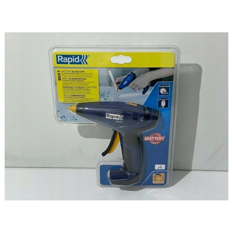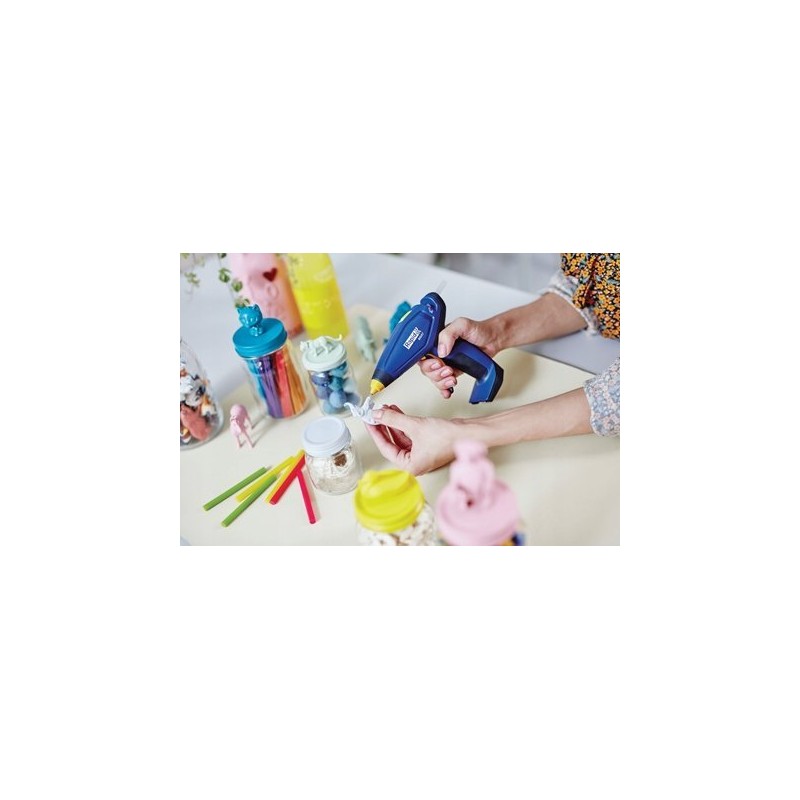 Die BGX7 ist eine kabellose Heißklebepistole, ideal für künstlerische Anwendungen und Bastelarbeiten sowie für kleinere Reparaturen. Sie arbeitet 30 Minuten lang ohne Aufladen und ist in nur 20 Sekunden betriebsbereit. Die Pistole verfügt über eine praktische Abschaltautomatik, die den Akku schont und die Sicherheit erhöht, indem sie verhindert, dass das Gerät versehentlich eingeschaltet bleibt. Die BGX7 wird mit einem 3,6-V-Akku betrieben und lässt sich über einen praktischen Micro-USB-Anschluss in weniger als zwei Stunden aufladen.