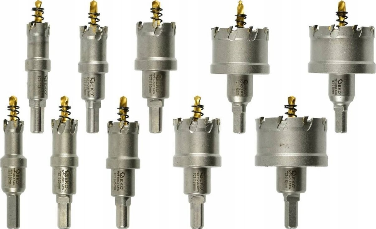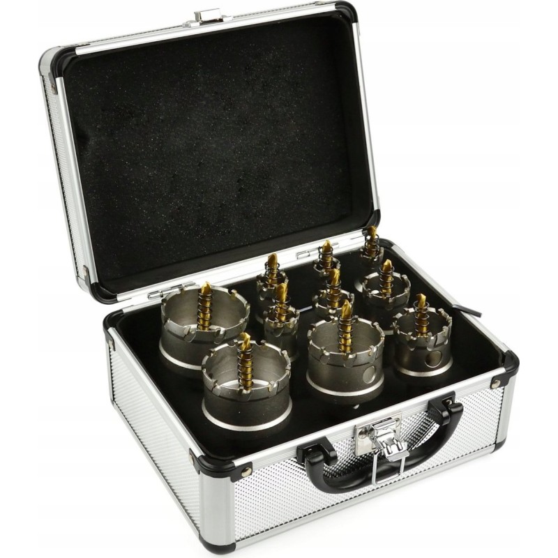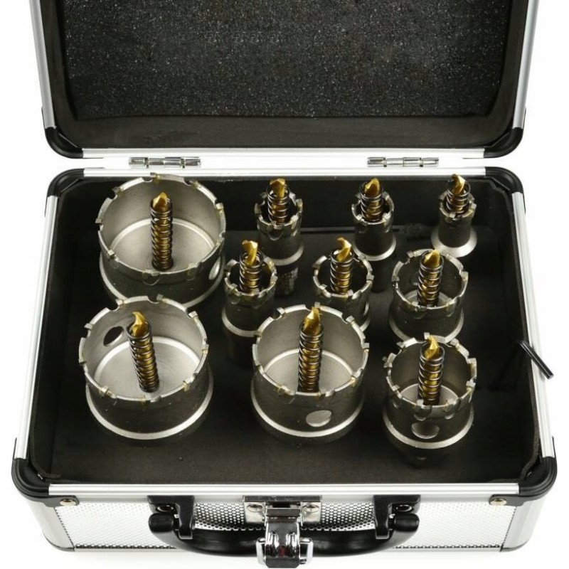 ✅ Set mit 10 TCT-Bohrern für Metall in den Größen 16–53 mm. Die Schneiden bestehen aus Hartmetall, das sich im Vergleich zu HSS-Schnellarbeitsstahl durch eine deutlich höhere Härte und Temperaturbeständigkeit auszeichnet.