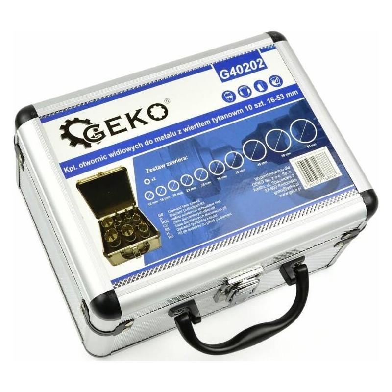 Geko Set mit 10 Hartmetall-Lochsägen für Metall mit Titanbohrer, 16–53 mm (10)
