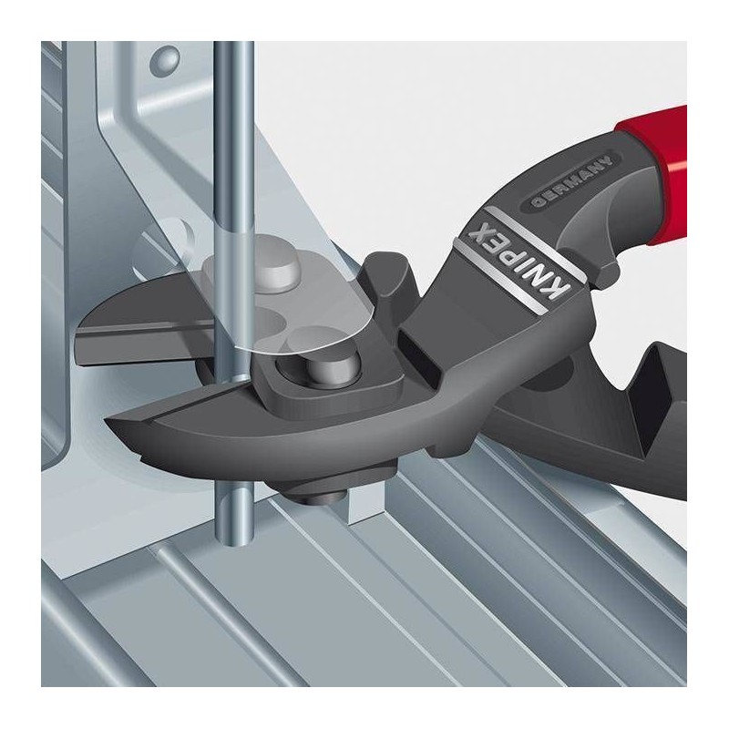 Die Zange ist zum Schneiden von weichem, mittelhartem, hartem und sehr hartem (Klavier-)Draht bestimmt. Die Griffe sind mit einer dünnen PVC-Schicht überzogen. Die Knipex CoBolt Schneidezangen zeichnen sich durch Langlebigkeit und hohe Verarbeitungsqualität aus. Dank der harten Schneiden ist das Schneiden kein Problem und erfordert keinen großen Kraftaufwand seitens des Anwenders.