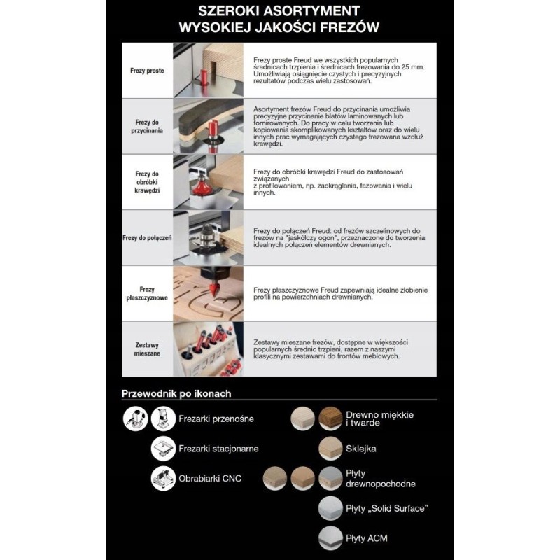 Der Fräser 30-10308P ist ein hervorragendes Werkzeug für die Bearbeitung von Weich- und Hartholz, Sperrholz sowie Holzwerkstoffplatten. Dank seiner präzisen Konstruktion eignet er sich ideal für die Herstellung komplexer Muster und Details in Möbeln, wodurch sich in der Heimwerkstatt professionelle Ergebnisse erzielen lassen.