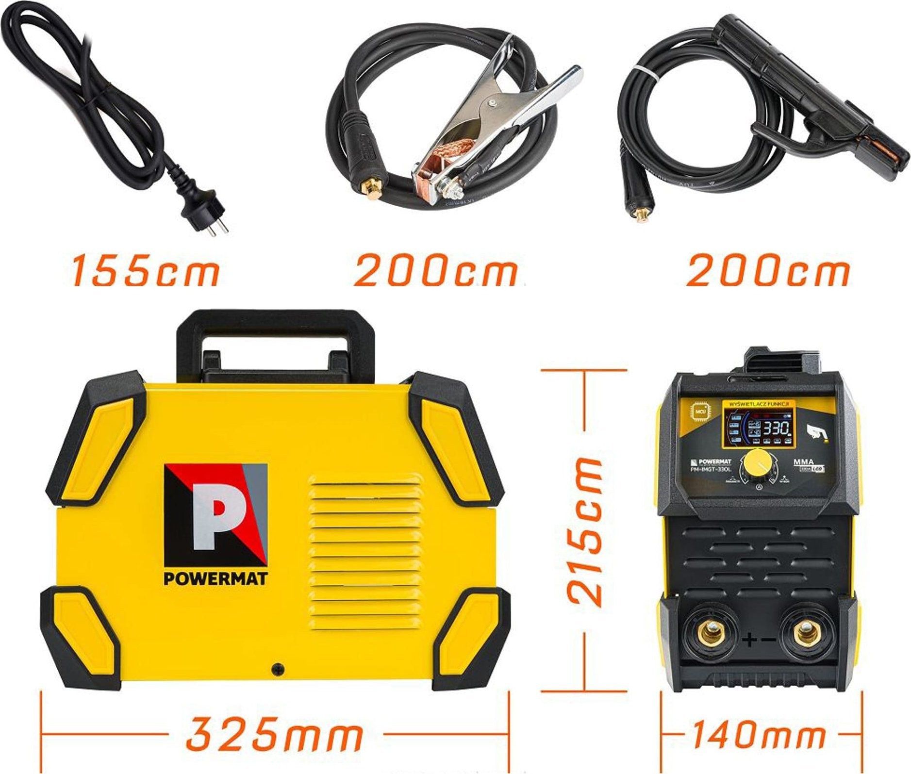 Das Gerät schweißt mit einem Strom von 20 bis 330 A und ermöglicht das Schweißen mit Elektroden mit einem Durchmesser von 1,6 mm bis 4 mm.