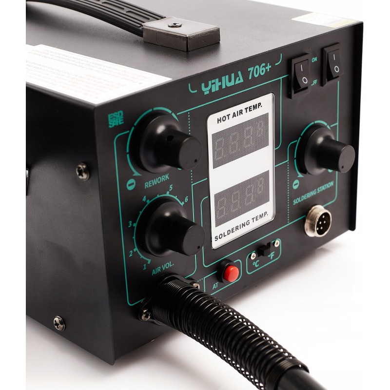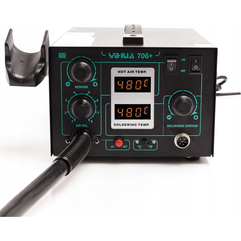 Der Kunststoffschweißer Yihua 706+ ist ein modernes Gerät, das dank der Zusammenarbeit von Techrebal mit dem renommierten Hersteller von Lötstationen Yihua entstanden ist. Dieses fortschrittliche Modell vereint die Funktionen einer professionellen Lötstation und eines Kunststoffschweißgeräts, was es zu einer hervorragenden Wahl sowohl für Hobbybastler als auch für Fachleute macht, die sich mit der Reparatur von Elektronik und Mikroelektronik beschäftigen.