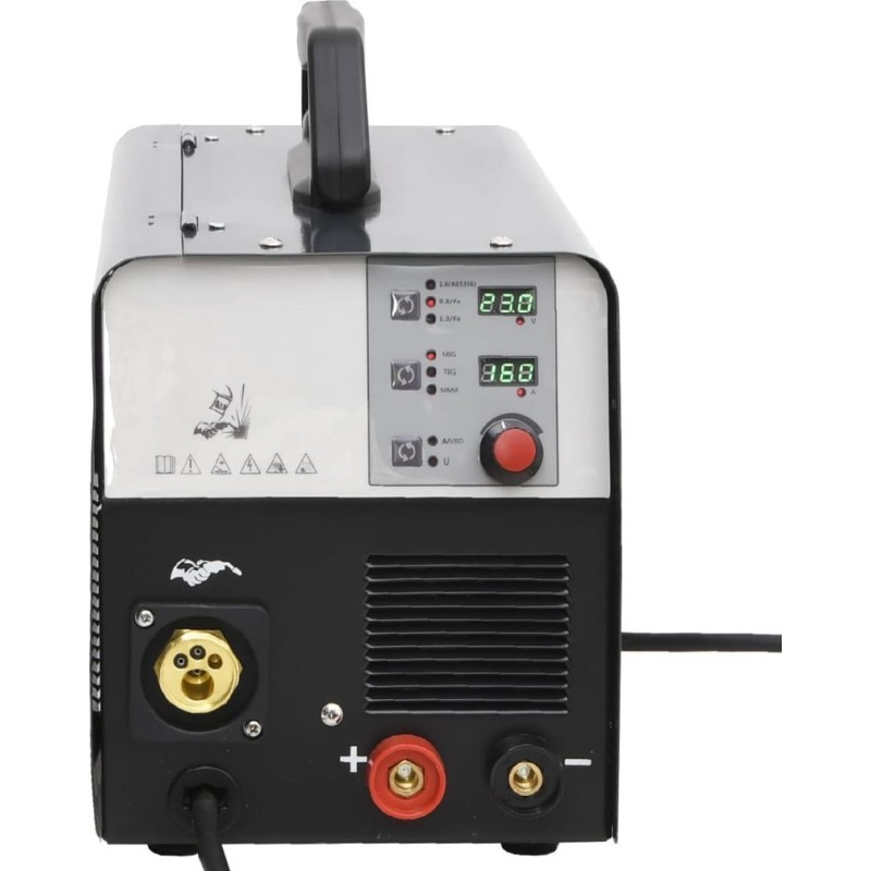 - Multifunktionales Schweißgerät: Dieses Gerät ermöglicht das Schweißen in verschiedenen Modi: MMA, MIG und WIG, wodurch es die meisten Ihrer Arbeitsanforderungen erfüllt.