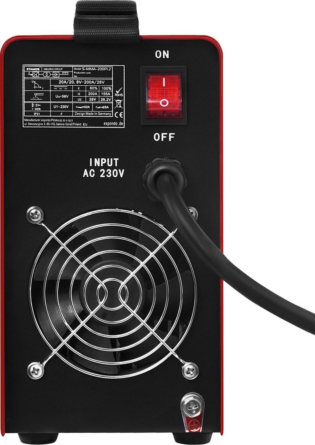 Stamos Kompaktes, zuverlässiges MMA-Schweißgerät mit IGBT-Hot-Start-Funktion, 200 A, 230 V, S-MMA-200PI.2
