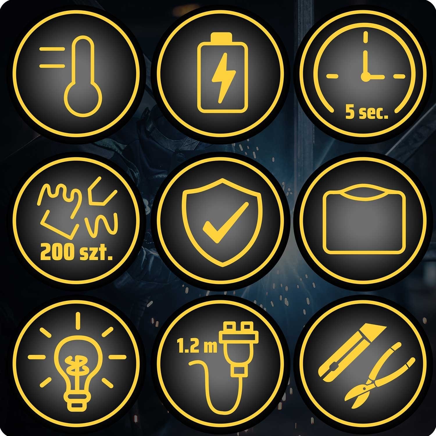 ✔ LED-Lampe, die den Schweißbereich beleuchtet. Bessere Sichtbarkeit und höhere Arbeitspräzision.