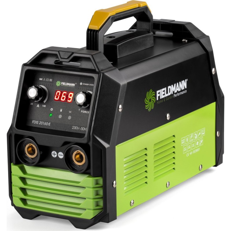 Fieldmann FDIS 20160-E. Minimaler Schweißstrom: 20 A, Maximaler Schweißstrom: 160 A, Minimaler Elektrodendurchmesser: 1,6 mm. Leistungsaufnahme: 7,2 kVA, Eingangsspannung (Wechselstrom): 230 V, Eingangsfrequenz (Wechselstrom): 50 Hz