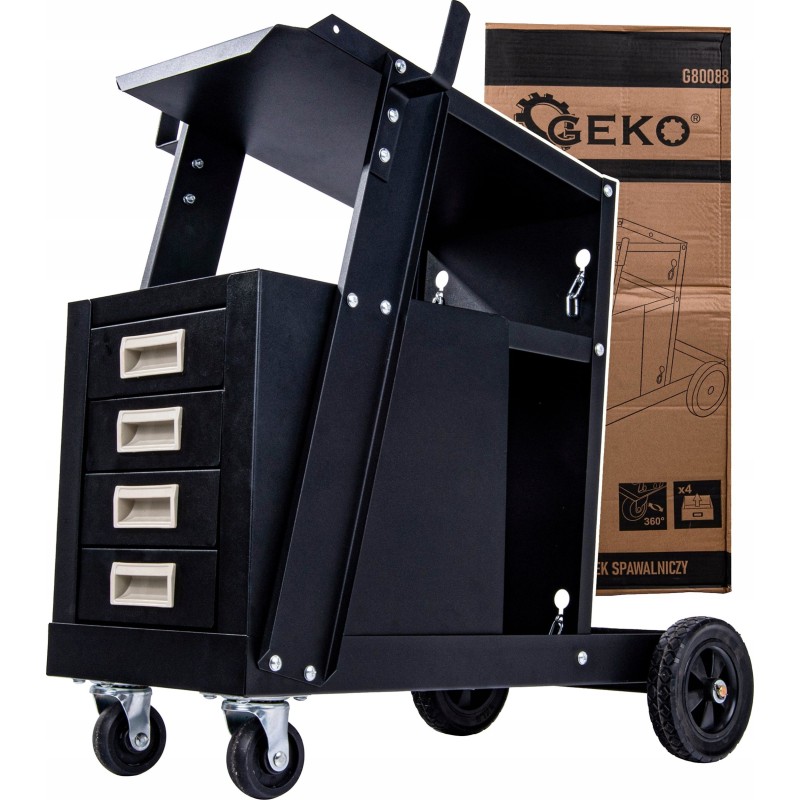 Der mobile Schweißwagen von Geko ist nicht nur ein praktisches Hilfsmittel, sondern auch bei alltäglichen Aufgaben. Mit seiner Hilfe ist alles an seinem Platz, sodass man sich auf die Arbeit konzentrieren kann, anstatt Zeit mit der Suche nach Werkzeugen zu verschwenden.