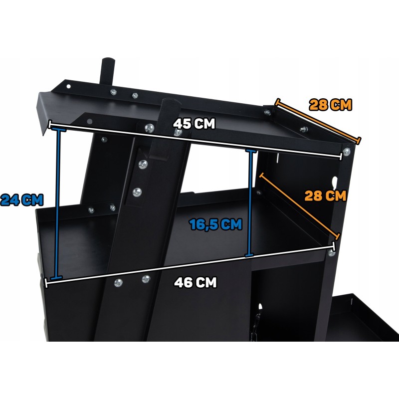 - ✅ Die Abmessungen des Wagens und sein modularer Aufbau machen ihn zur perfekten Wahl sowohl für Industriewerkstätten als auch für kleinere Werkstätten.