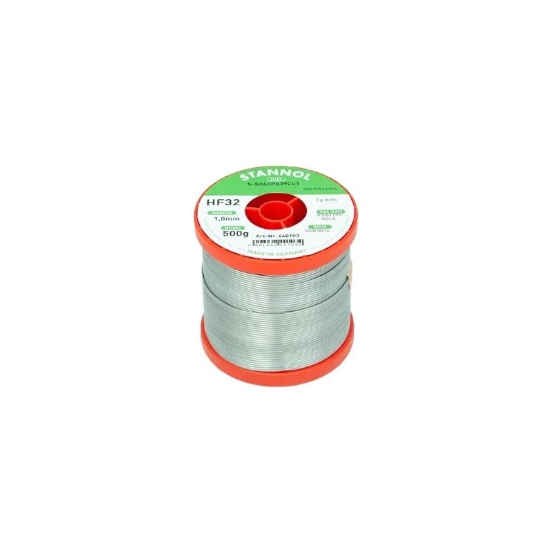 Das Lötzinn Stannol HF32 eignet sich ideal zum Löten von elektronischen Bauteilen und ist damit die perfekte Wahl sowohl für Profis als auch für Hobbybastler. Dank seiner Zusammensetzung erleichtert dieses Lötzinn den Lötvorgang und sorgt für dauerhafte und stabile Verbindungen. Mit der Wahl von Lydmetalis Sn60/Pb39/Cu1 investieren Sie in Qualität und Zuverlässigkeit, die bei der Arbeit mit Elektronik entscheidend sind.