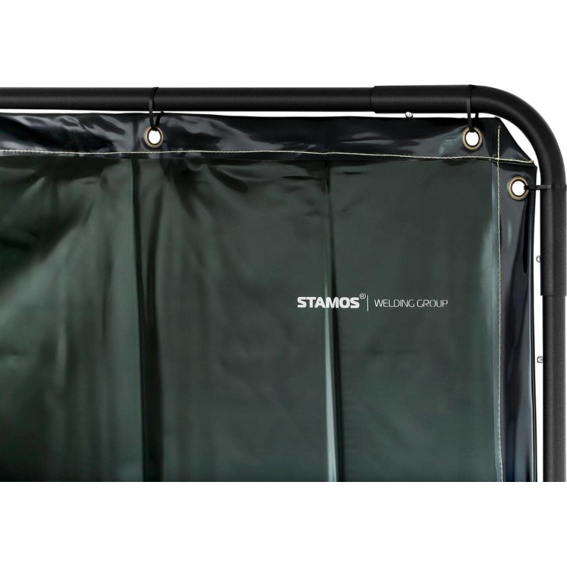 der Marke Stamos Welding Group schützt vor UV-Strahlung, Funken, Lichtbögen und Metallspritzern. Er eignet sich für Werkstätten, Reparaturbetriebe und Baustellen. Der Vorhang besteht aus 0,4 mm