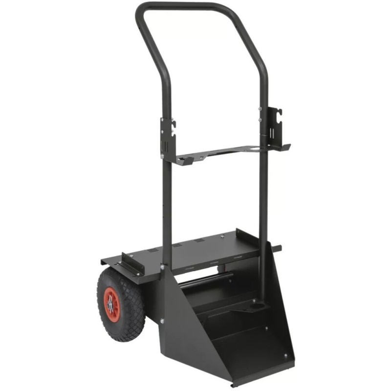 AnwendungDer Wagen eignet sich ideal für den Transport von Schweißgeräten und Materialien und ist damit ein unverzichtbares Hilfsmittel in Werkstätten und auf Baustellen.