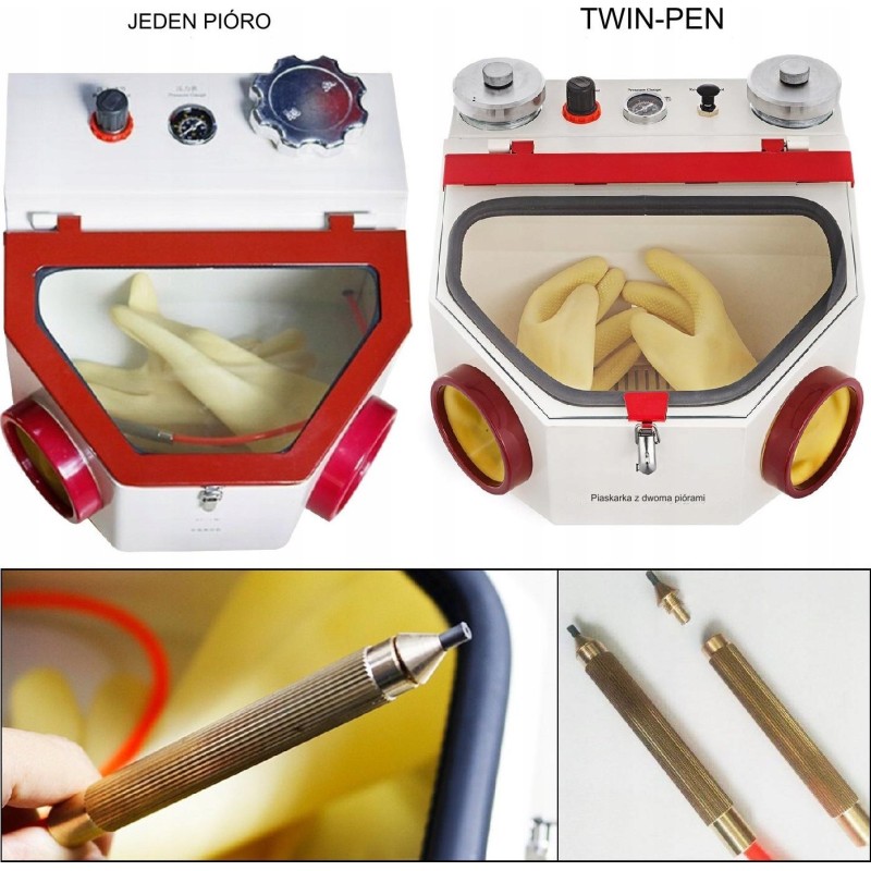 Lieferumfang: 1 x Sandstrahlmaschine 1 x Beleuchtungsrohr 1 x Luftschlauch 1 x Staubschlauch 2 x Sicherungen 2 x Düsen 1 x Aluminiumoxid 1 x Bedienungsanleitung