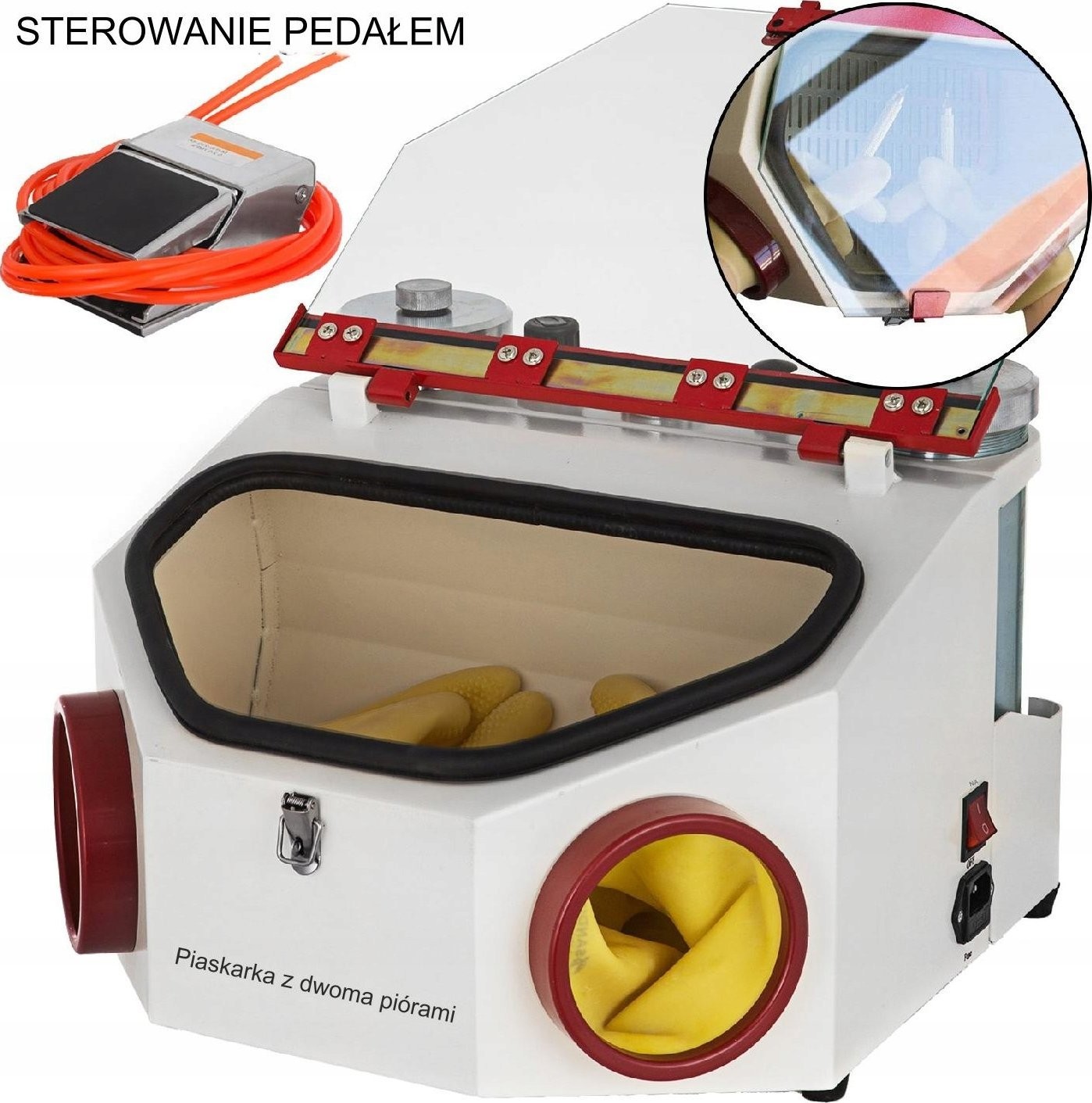 Der großzügige Arbeitsraum mit einem Durchmesser von 43 cm erleichtert die Bedienung erheblich. Zusätzlich ist die Sandstrahlmaschine mit einem Fußpedal ausgestattet, das eine einfachere Steuerung der Maschine ermöglicht.