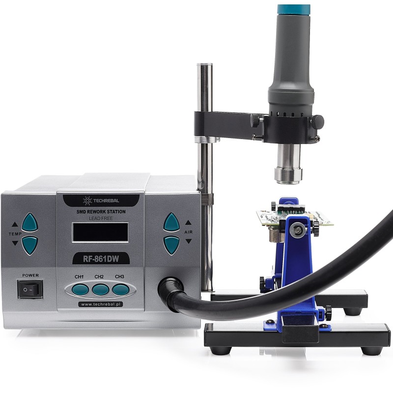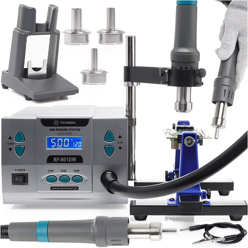 Heißluftstation 861DW – Schweißgerät mit Kolbenhalterung und Leiterplatte