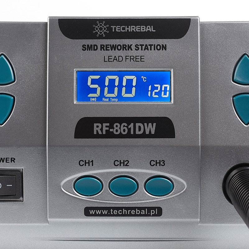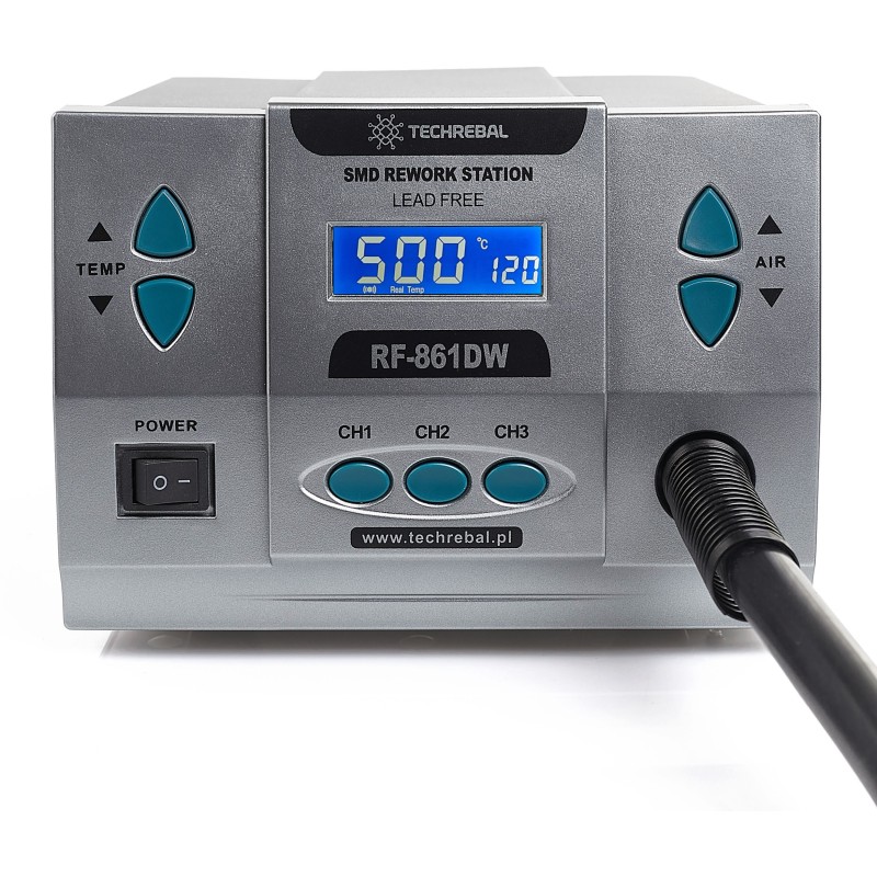Dank einer leistungsstarken Turbine verfügt die Lötstation 861DW über eine Leistung von 1000 W, wodurch die erforderliche Temperatur schnell erreicht wird. Benutzer haben die Möglichkeit, die Temperatur im Bereich von 100 bis 500 °C einzustellen und die Luftstromstärke im Bereich von 1 bis 120 l/min zu regulieren, was eine hervorragende Kontrolle über den Lötprozess gewährleistet.