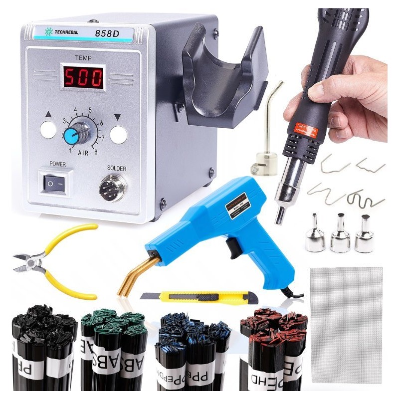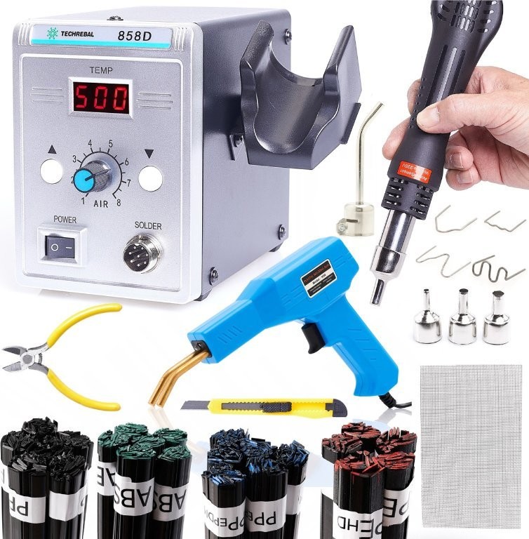 Schweißgerät TECHREBAL 858D + Kunststoffschweißset + Kunststoffhefter + 200