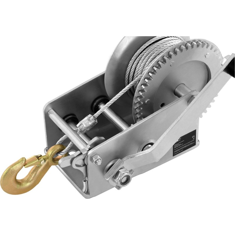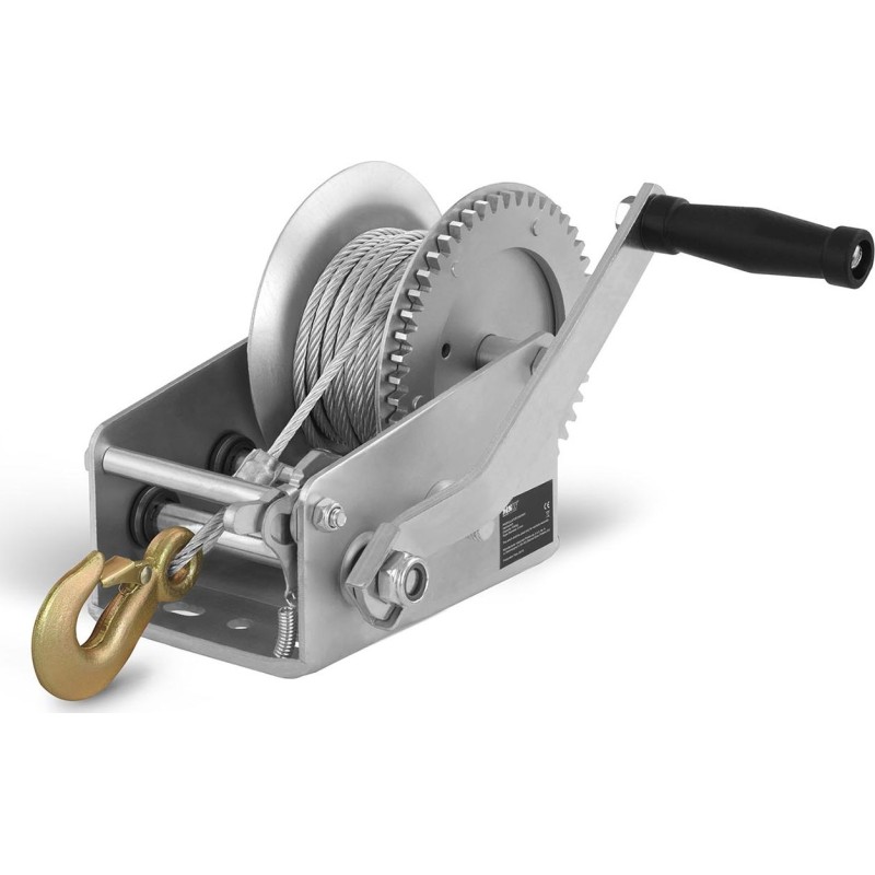 Diese praktische Handkurbelwinde kann Objekte mit einem Gewicht von bis zu 2800 kg ziehen, sofern diese auf Rädern stehen. Bei liegenden und schwimmenden Gegenständen beträgt die maximale Tragkraft 1130 kg bzw. 2000 kg. Dank der Übersetzung von 2:1 + 4:1 wandelt das Gerät Muskelkraft effektiv in Zugkraft um, was eine reibungslose Bedienung der Winde ermöglicht. Einen sicheren Halt garantiert der an der Kurbel montierte drehbare Griff.